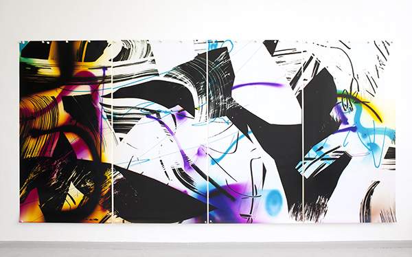Kroppens direkta rörelser transformeras till ekon och sidoeffekter av minnesfragment till duken – måleri / paintings.