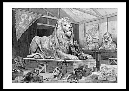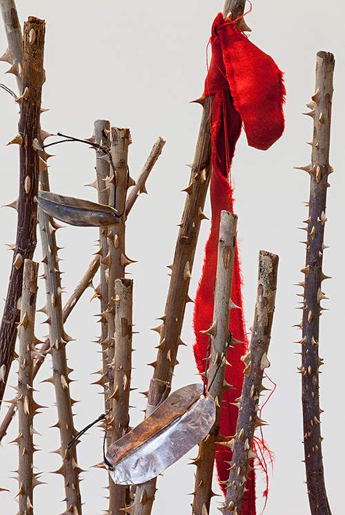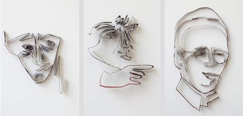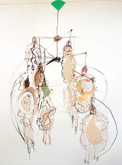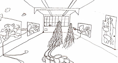 installation av bla akvareller, fotografier, skisser och skulpturer.