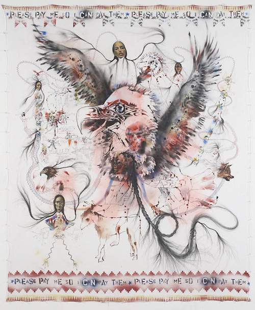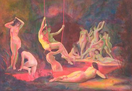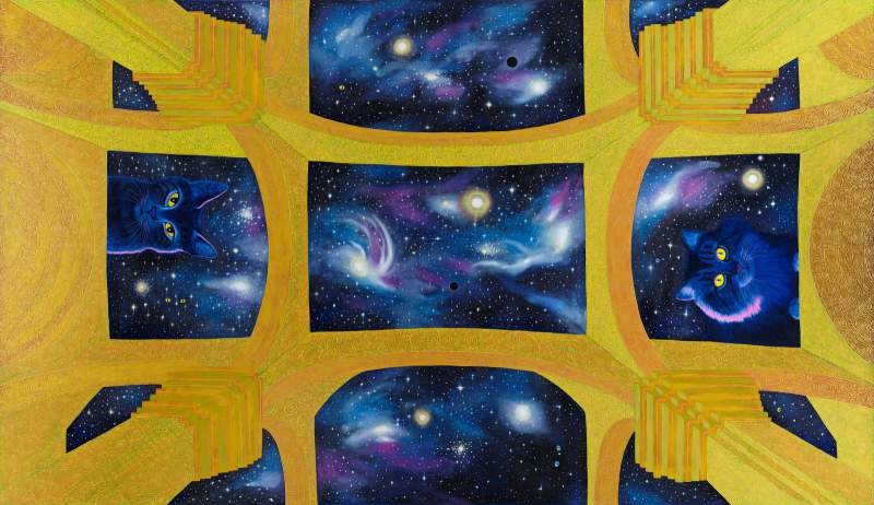 5 målningar som var och en består av flera delar, bl a en golvmålning i 34 delar.