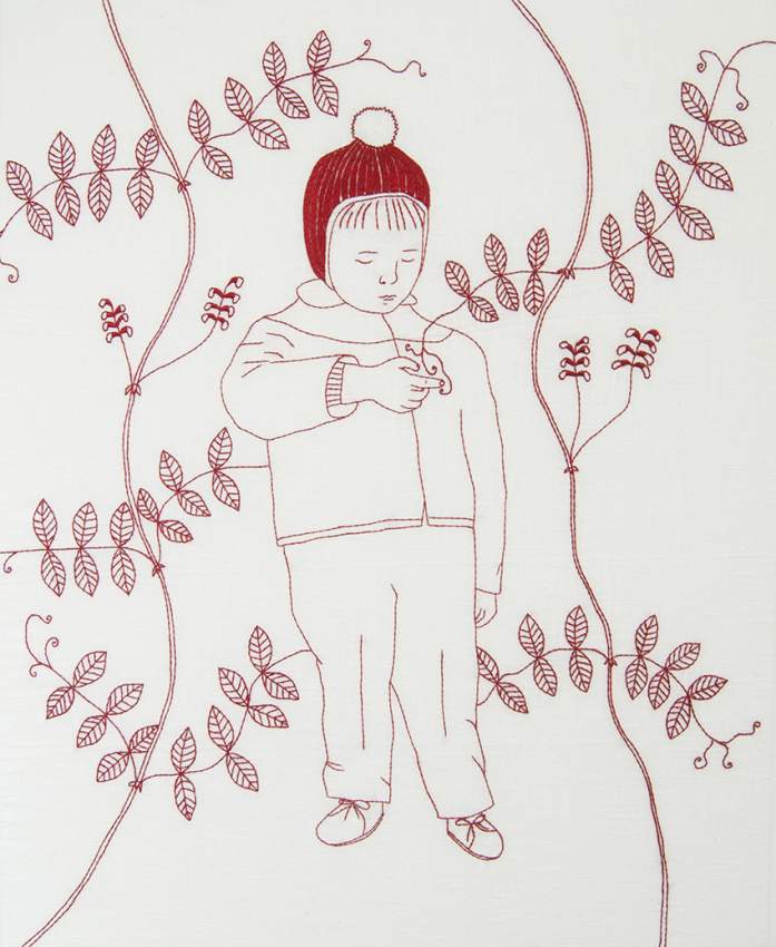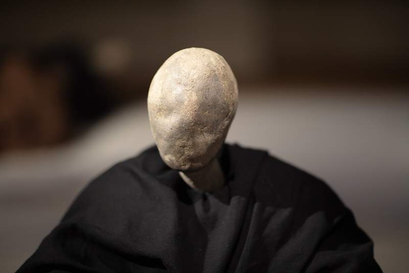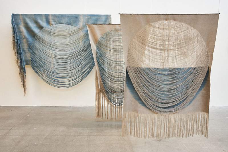 I utställningen får vi se en serie textila skulpturer som behandlar tid, minnen och människans längtan efter mening och helighet i en sekulär samtid.