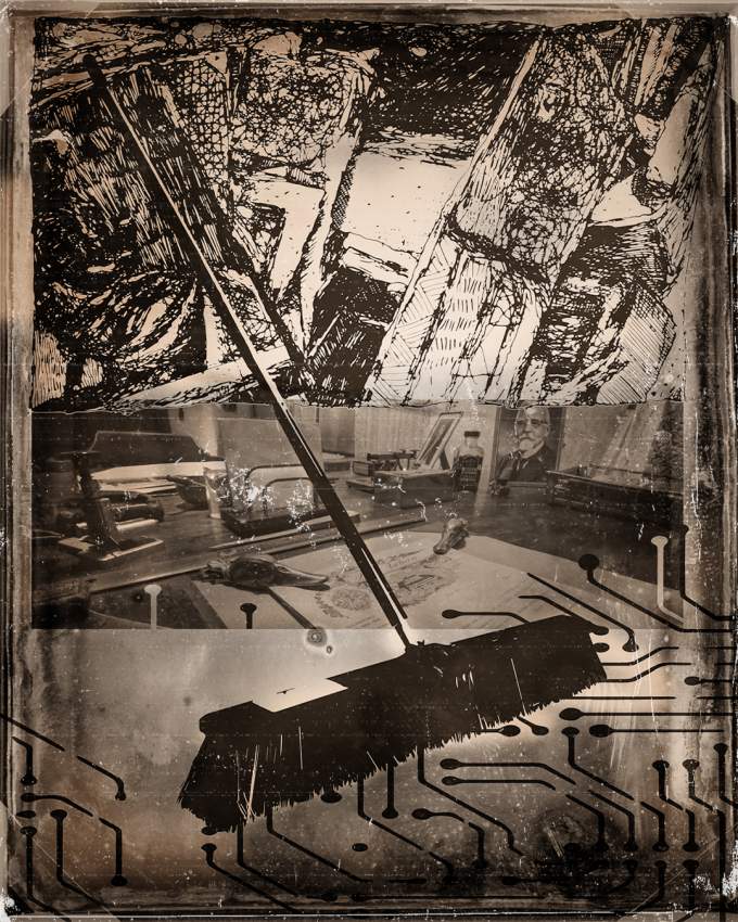växte upp i Mariannelund men bor sedan många år i Vadstena. Här är han verksam som illustratör och tecknare. I utställningen visas bilder med satir och folkliv.