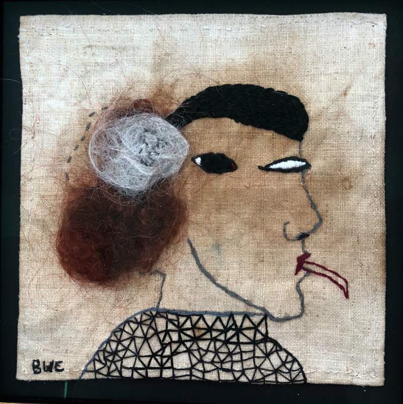 teckning måleri och textilmontage