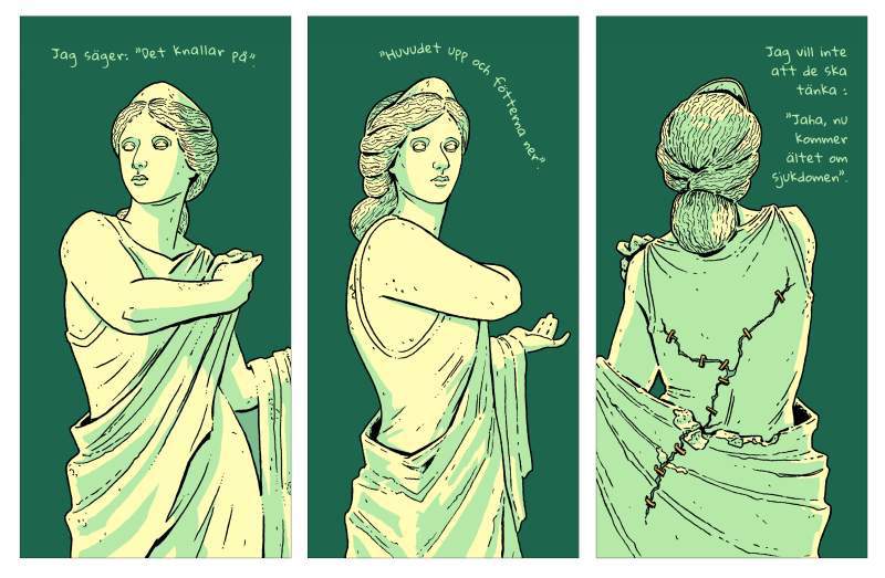 Manusförfattaren Max Hebert har samtalat med människor i Sandviken och Gävle som lever med bl.a. långtidssjukrivning, funktionsnedsättningar, erfarenhet av kriminalitet och med bakgrund i ett annat land.