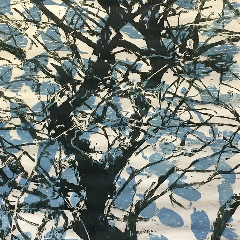 Rumslighet – träsnitt på tyg och papper.