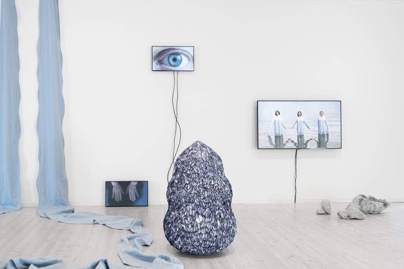 We Swim in One Water / Act XXII, Tidal Gatherings – Utställningen visar skulpturer och videokonst, berättelser om uråldrig is, floder och andra vatten, som rinner genom tidernas olika landskap, det mänskliga och mer-än-mänskliga. I verken undersöks den intima kopplingen mellan organismer och ekosystemens sårbarhet.