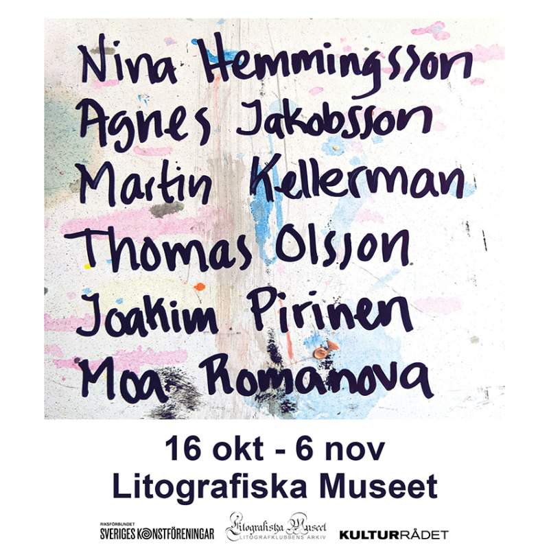 Medverkande konstnärer:Åsa Byred, Mischa Björkroos, Svenerik Jakobsson, Nina Kerola, Margon Lindberg, Margareta Röstin, Nicos Terzis, Chun Lee Wang Gurt. // Black – White. Exhibition with focus on graphic printing technics. Eight artists from Huddinge who in different ways have had a connection to The Museum of Lithography during the 15-years of the museum.