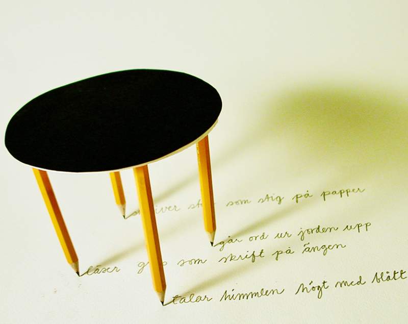 visar hur en idé kan utvecklas från det dragna strecket till olika material och uttrycksmedel med mönster i olika former.