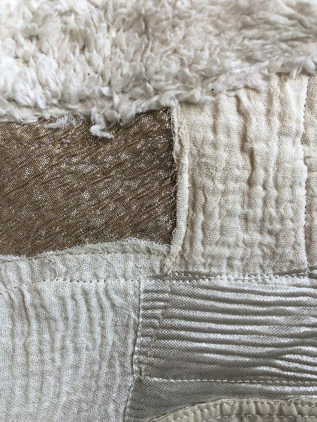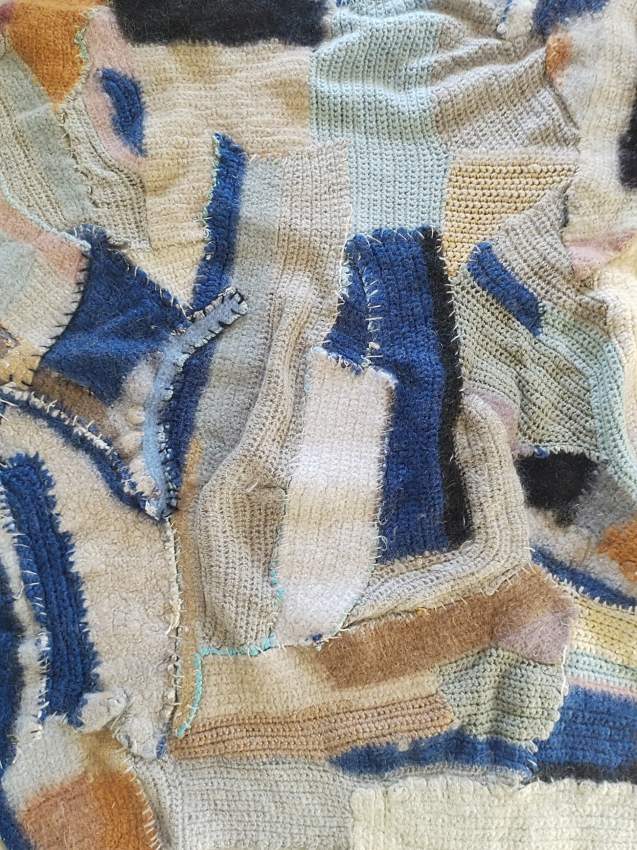 – konstnärliga arbeten som utgår ifrån upphittade textila material och deras inneboende berättelser och referenser. Genom återbruk av polyestermaterial och användandet av lapptäcksteknik som konstruktionsmetod, undersöker konstnären bland annat kopplingar mellan nu och då, material och kontext, identitet och grupptillhörighet.