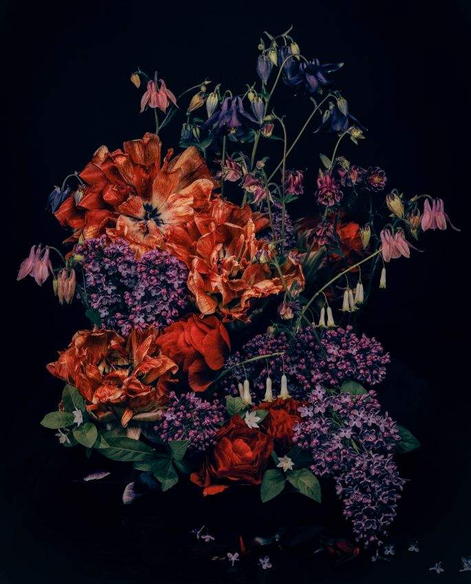 Genom att väva samman bilder av blomsterarrangemang med fotografier från sin mammas sista tid utforskar utställningen frågor om åldrande, närvaro och det oundvikliga överlämnandet mellan generationer.