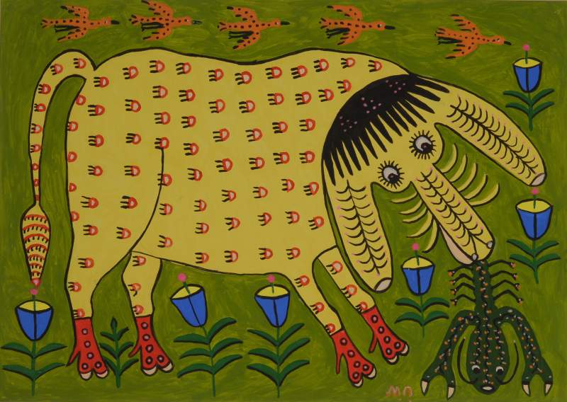 och verk ur Moderna Museets samling. En av Ukrainas mest välkända och uppskattade konstnärer. Hennes stiliserade och samtidigt lekfulla mönster har sitt ursprung i folkligt broderi och traditionellt hantverk. / / One of Ukraine’s best-known and most beloved artists. Her stylized, playful patterns are inspired by local embroidery and other traditional handicrafts.