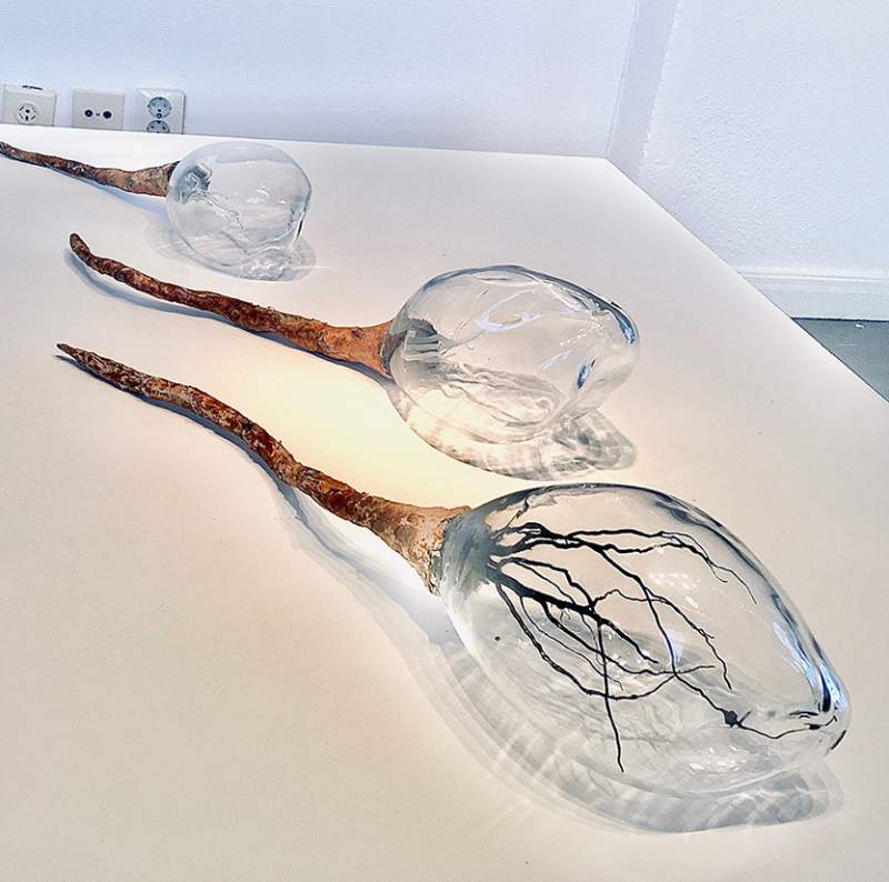 Ylva W Franzén och Maya Strandberg är båda keramiker verksamma i G-studion Gustavsberg, Värmdö. Deras respektive arbeten tar på olika sätt avstamp i människans varande i världen, deras relation till naturen och idén om den djupa tiden.