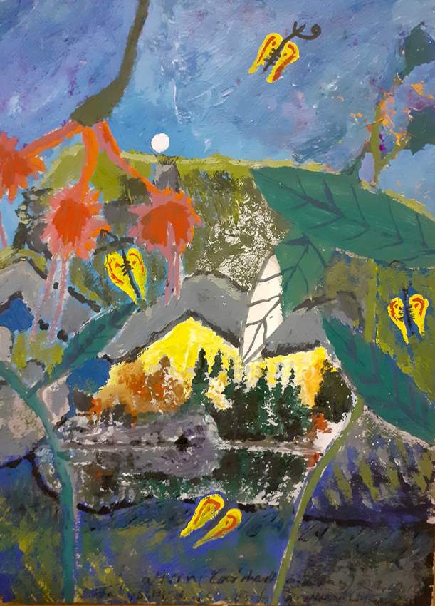 Akvarell, olja, akryl, fotokonst, tovad ull mm (öppet alla dagar 10-16) // Watercolor, oil, acrylic, photo art, woven wool etc. (open every day 10-16).