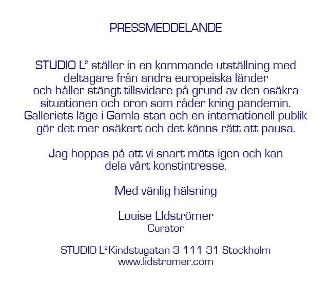 »Efter dryga 20 år och 190 utställningar (målet var 200, men Corona kom emellan) är det nu dags att ta farväl. Välkomna att hälsa på, ta farväl eller fynda konst och design till drömpriser!«