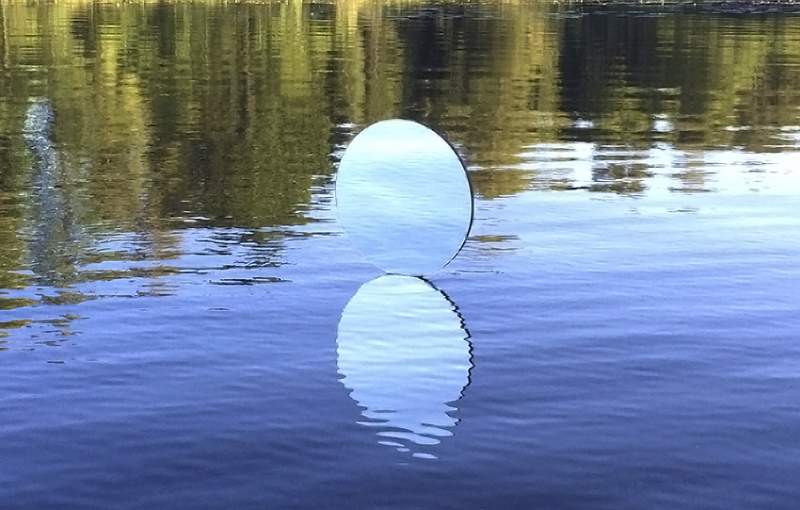 Ljus och färger i ständig förvandling. Video . . . // A floating mirror in a lake appears like a hole in the water.