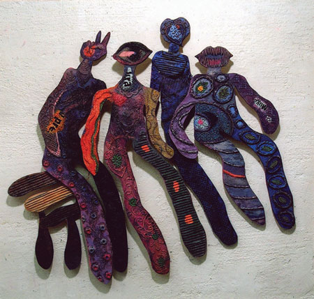 Konstnären Juntunen Roos har arbetat i en svensk textiltradition, men har även provat på japanska tekniker. På senare tid har hon utforskat den finska hantverkstraditionens näverteknik, som hon kom i kontakt med som barn via släkten i Finland. I modern tid har nävern bytts ut mot olika plastmaterial. Genom vävtekniken blir bilderna
