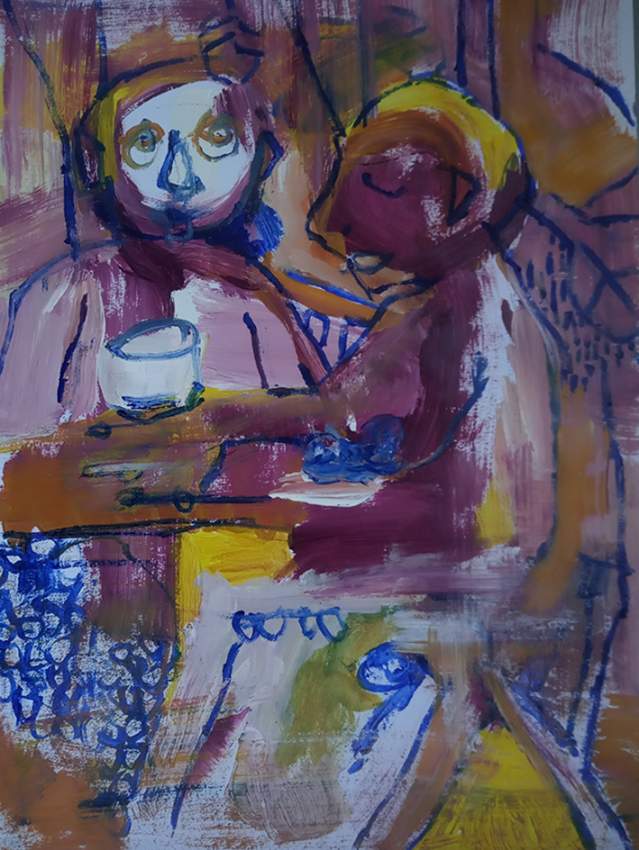 Konstnären Lisa Juntunen Roos visar och berättar om sin konst