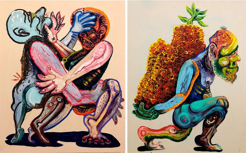 Ett färgstarkt måleri med kraftfulla penseldrag. Tjock oljefärg på stora dukar avbildar en grotesk, men också lustfylld, bildvärld befolkad av figurer med otydliga motiv, syften och existenser.  . . .  // Colourful paintings with powerful brush strokes. Thick layers of oil paint spread over large canvases portray grotesque – yet enticing – images, populated by figures of uncertain themes, purposes Read more about the exhibition www.vbm.se ⟹
