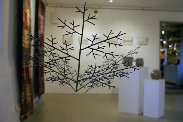 – MA enligt Lele Installationer av siden, papper och kaffefilter samt tuschmåleri i Sadelmakarlängans galleri. Leyun är utbildad i Kina och bosatt och verksam i Stockholm.